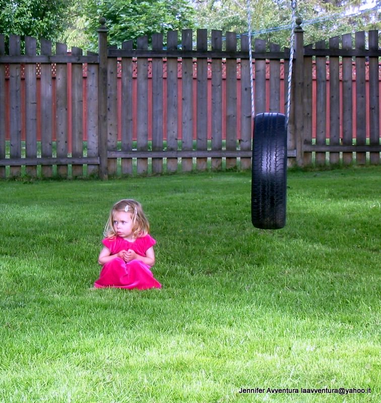 Meet Bella, my niece. She didn’t want to come in the house after a long afternoon playing outside on the tire swing. I snapped this photo while my sister was calling in.