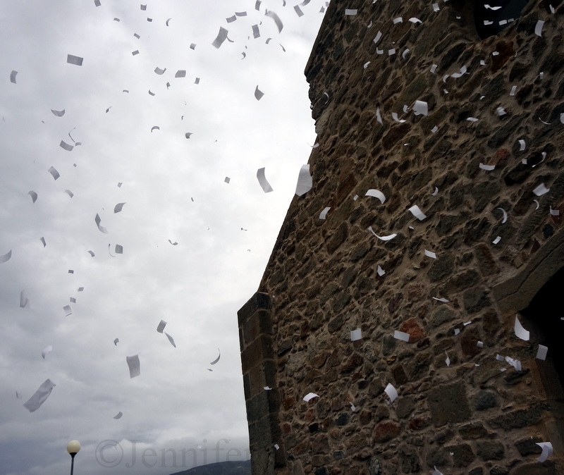 We greeted the bride; plates were smashed and the groom handed over the bouquet to his waiting bride to be. We then gathered in our cars and made a honking procession to the church in Viddalba … an angle of paradise between culture, sea, hot-springs and nature.